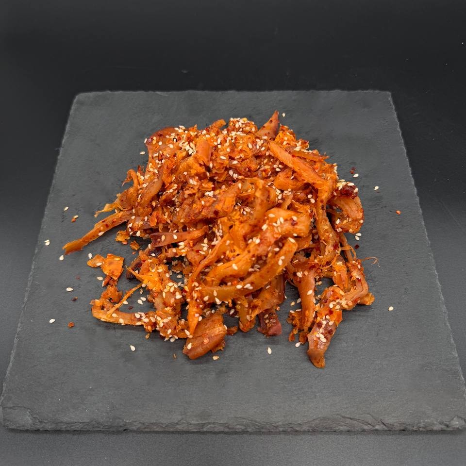 son un delicioso aperitivo con una combinación única de sabores. Estos calamares están preparados con un toque de sésamo tostado, que añade un sabor delicioso y una textura crujiente. Son ideales para disfrutar como un snack o como complemento en tus comidas, aportando un toque sabroso y exótico a tu menú.
