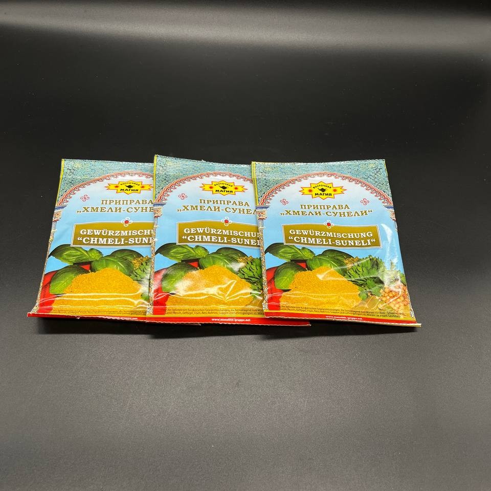 es una combinación tradicional de hierbas y especias originaria de la cocina caucásica. con su sabor complejo y aromático, esta mezcla es ideal para realzar sopas, guisos, carnes y platos de verduras. "Khmeli Suneli" aporta un toque auténtico y distintivo a tus recetas, haciendo que cada bocado sea más sabroso y memorable. su envase de 30 gramos es perfecto para tener en la cocina y utilizar en diversas preparaciones.